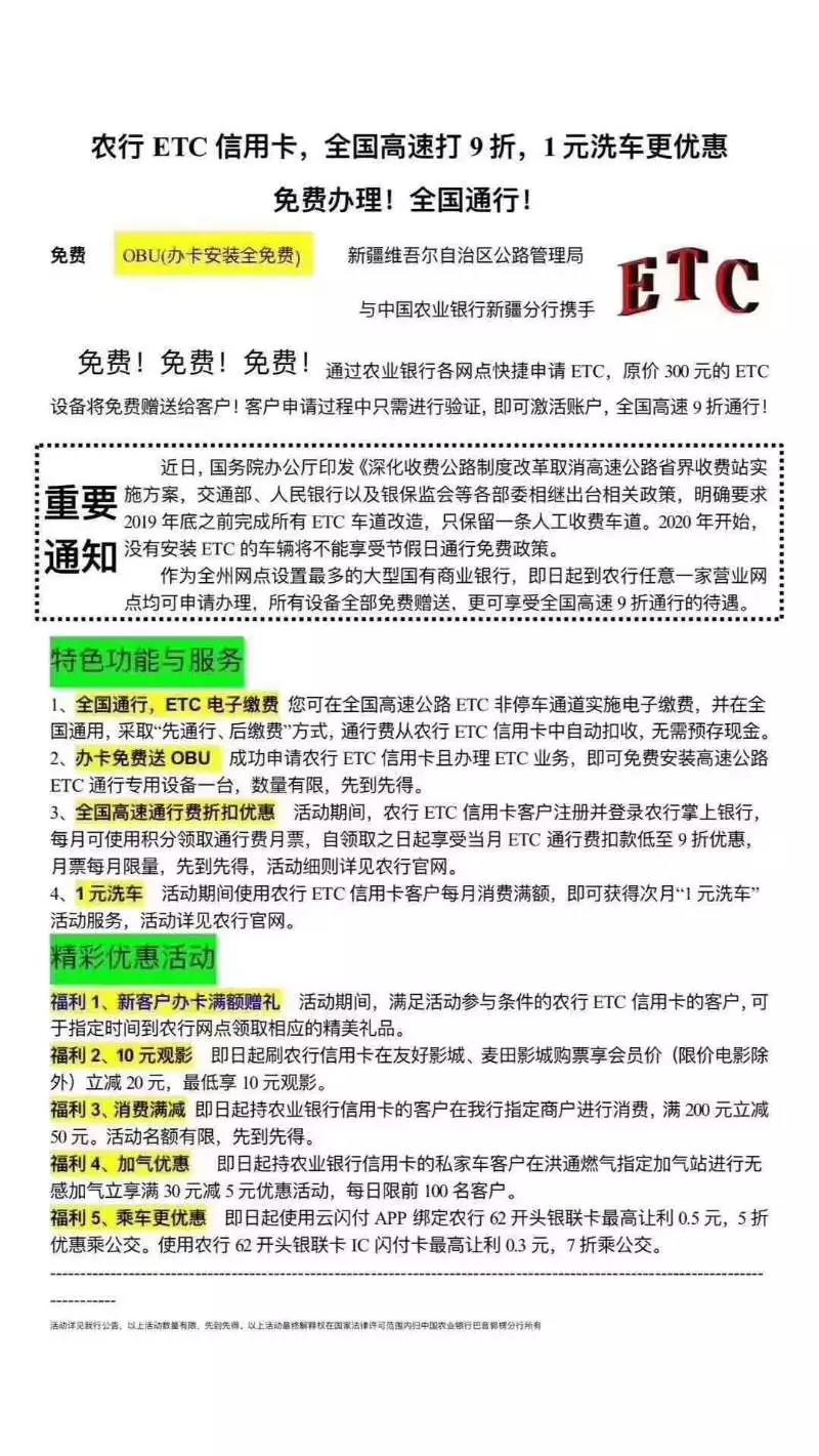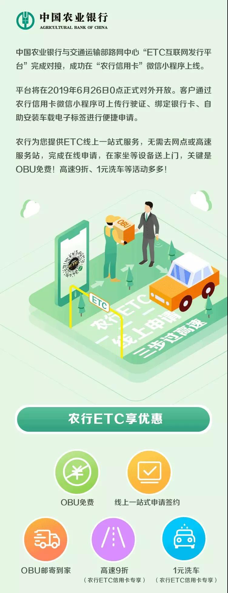 农行ETC在线一站式申请上线!免费OBU邮寄到家