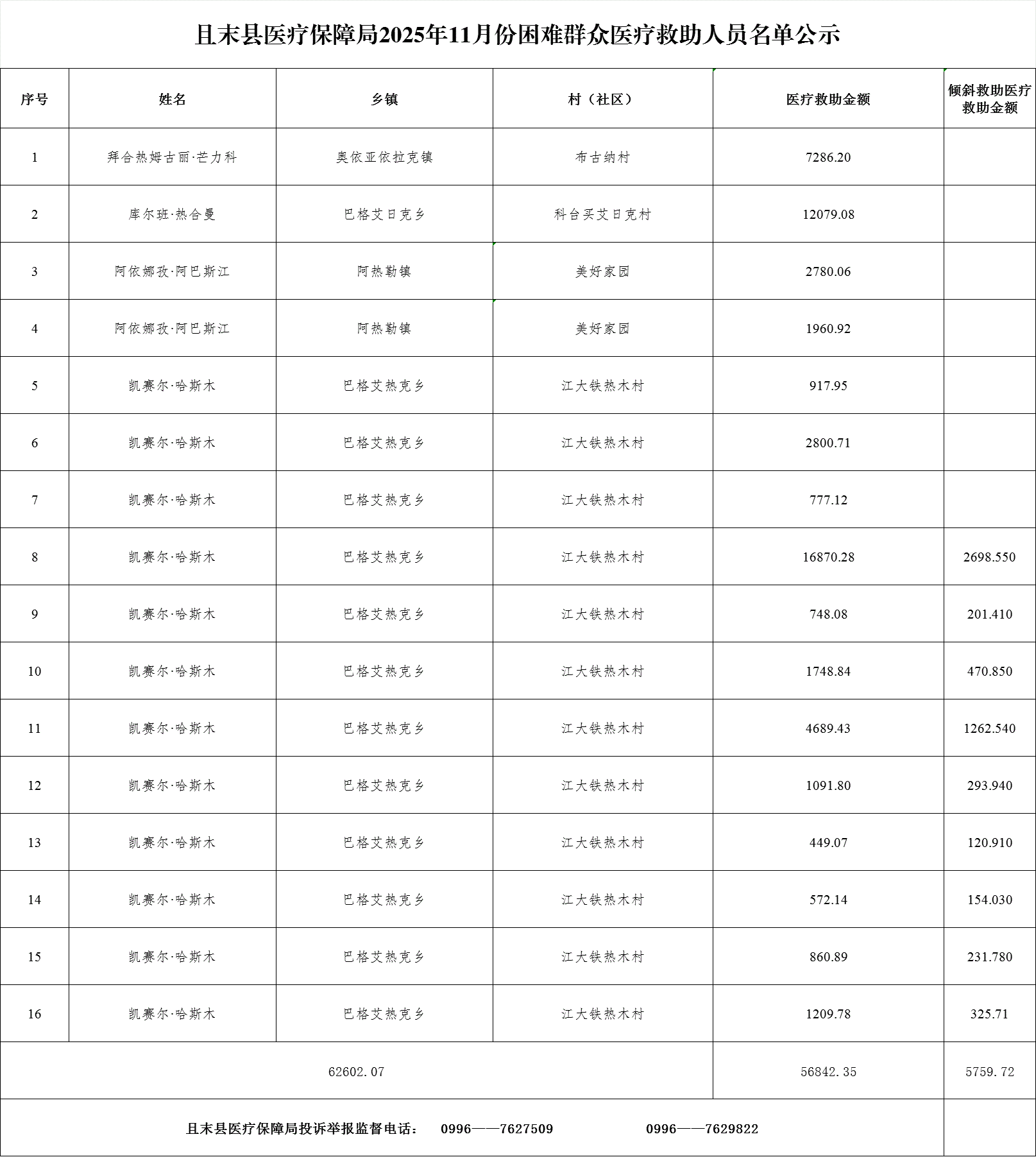 且末县医疗保障局2025年11月份困难群众医疗救助人员名单公示
