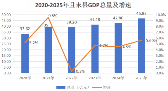 根据地区生产总值统一核算结果,全年实现地区生产总值(GDP)46.82亿元,比上年增长5.6%。其中:第一产业实现增加值12.13亿元,比上年增长6.7%,对GDP的贡献率为32.38%;第二产业增加值10.01亿元,比上年增长2.9%,对GDP的贡献率为10%;第三产业增加值24.68亿元,比上年增长5.9%,对GDP的贡献率为57.62%。三次产业结构为25.9:21.4:52.7。