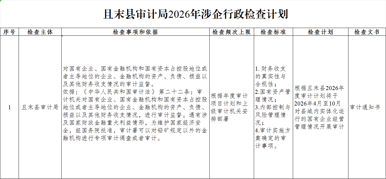 且末县审计局2026年涉企行政检查计划
