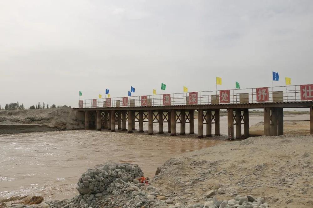 车尔臣河特大桥工程是和若S5项目控制性工程,是为了跨越车尔臣河农田、河区、道路而设计的,整座特大桥设计全长3.3公里,其中桩基开累完成623根,墩身102座,台身2座,垫石104座墩台。