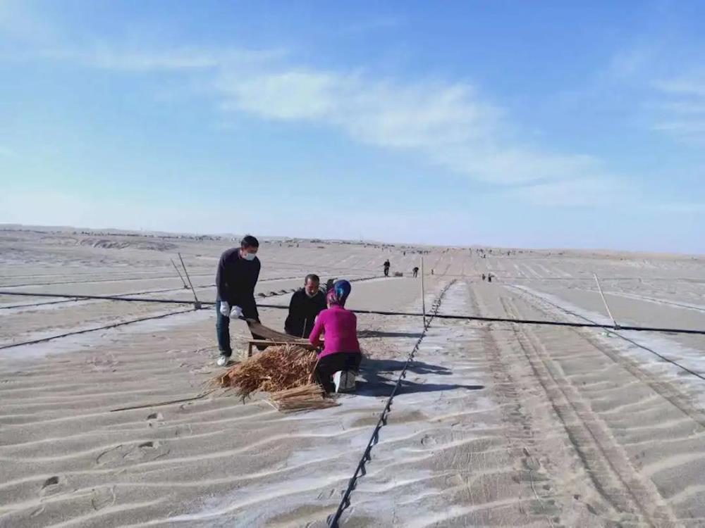 且末县防风治沙站负责人阿巴斯·艾萨说:“今年我们河东治沙站主要以种植梭梭、胡杨为主,梭梭苗是150万棵,胡杨苗是20万棵,种梭梭明年开始接种大芸,既达到生态效益,又达到经济效益,这样通过以工程养工程的方式,达到经济效益,以后养活我们生态工程,这些年,我们且末平时就是春季造林 ,因为春季我们种完树风沙比较大, 成活率并不高,经过我们进行多年的实验,进行秋冬季造林,秋冬季造林的存活率比春季造林好一些 ,成活率达到95%以上 。”
