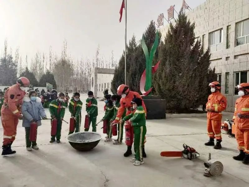 活动前,学校对整个培训会进行了精心策划和严密组织,邀请了塔提让镇胡杨林森林消防队消防员为学校师生开展消防知识培训。活动中设置了消防知识培训宣讲、消防器材参观以及灭火实操演练等环节。消防救援大队宣传员为师生系统讲解了消防面具、背负式风力灭火机、灭火器等消防器材的用途和使用方法,以及火灾报警和火场逃生的操作方法、处置程序。