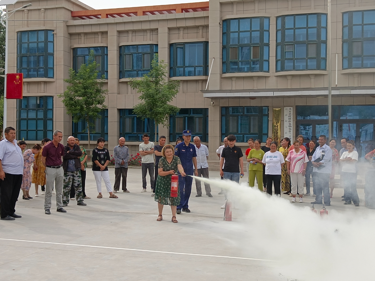 且末县人民路消防救援站三级消防士宣新党说:“今天通过组织观看火灾警示教育片,讲解夏季防火常识以及教会群众如何正确使用灭火器等,有效提高群众的消防安全意识和防灾自救能力。”