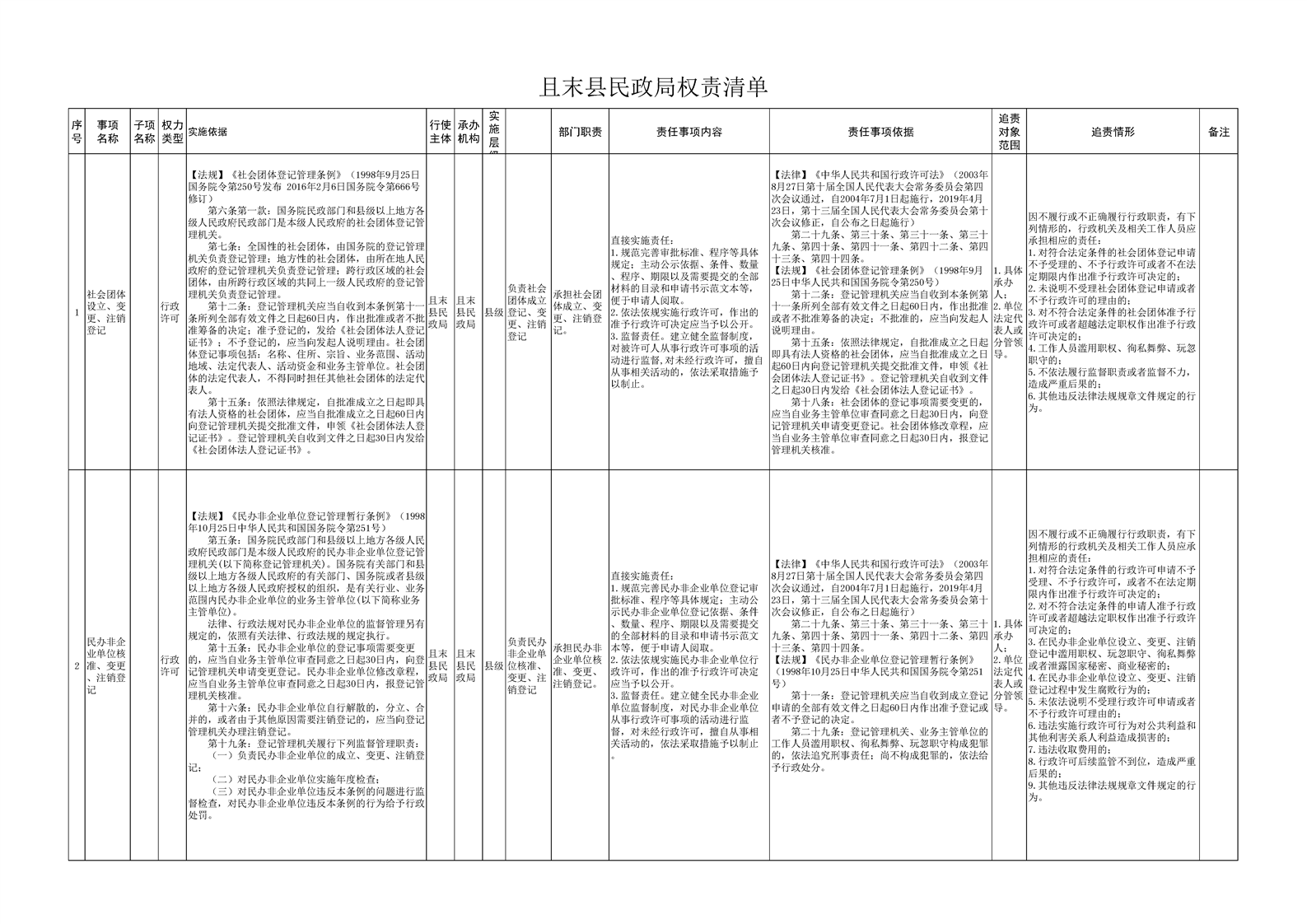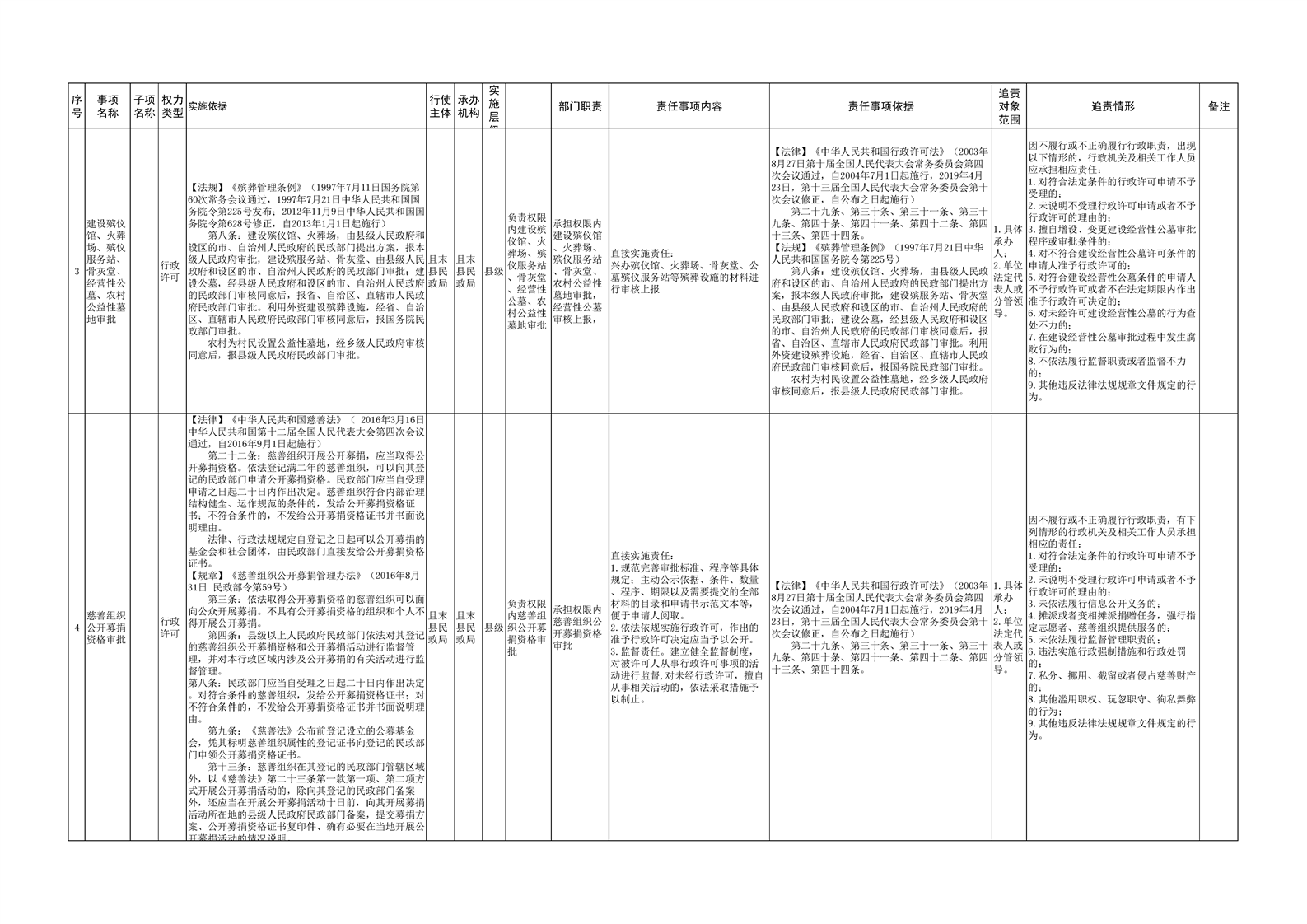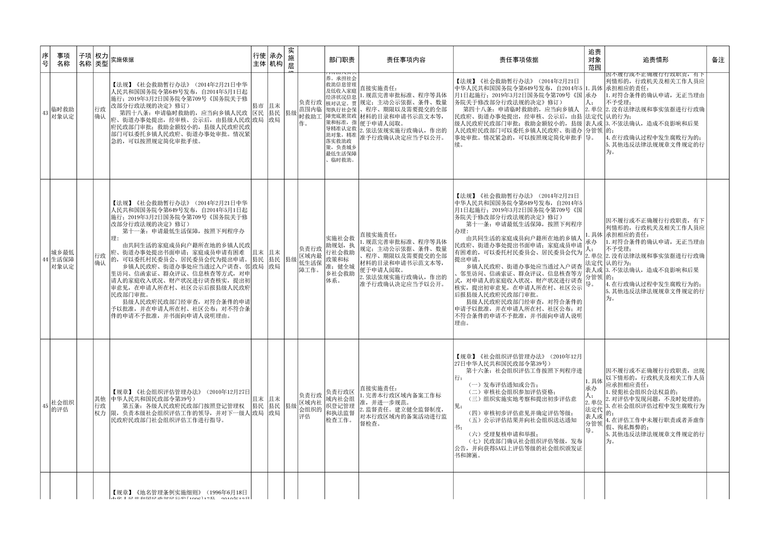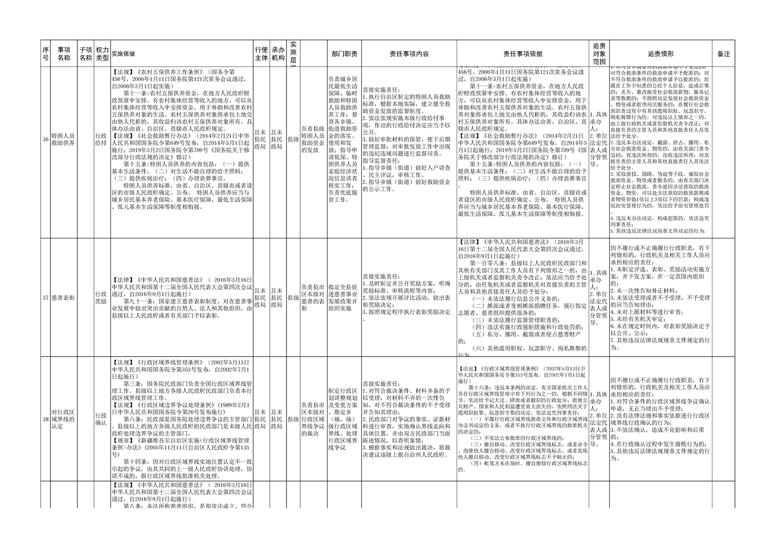 且末县民政局权责清单