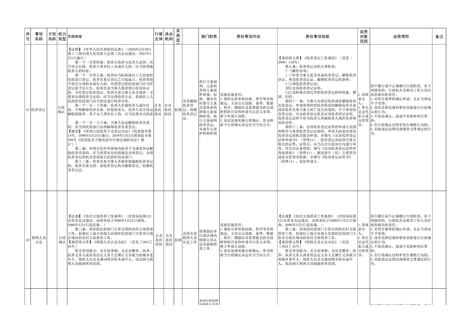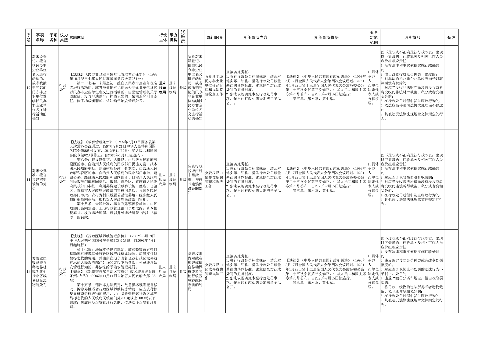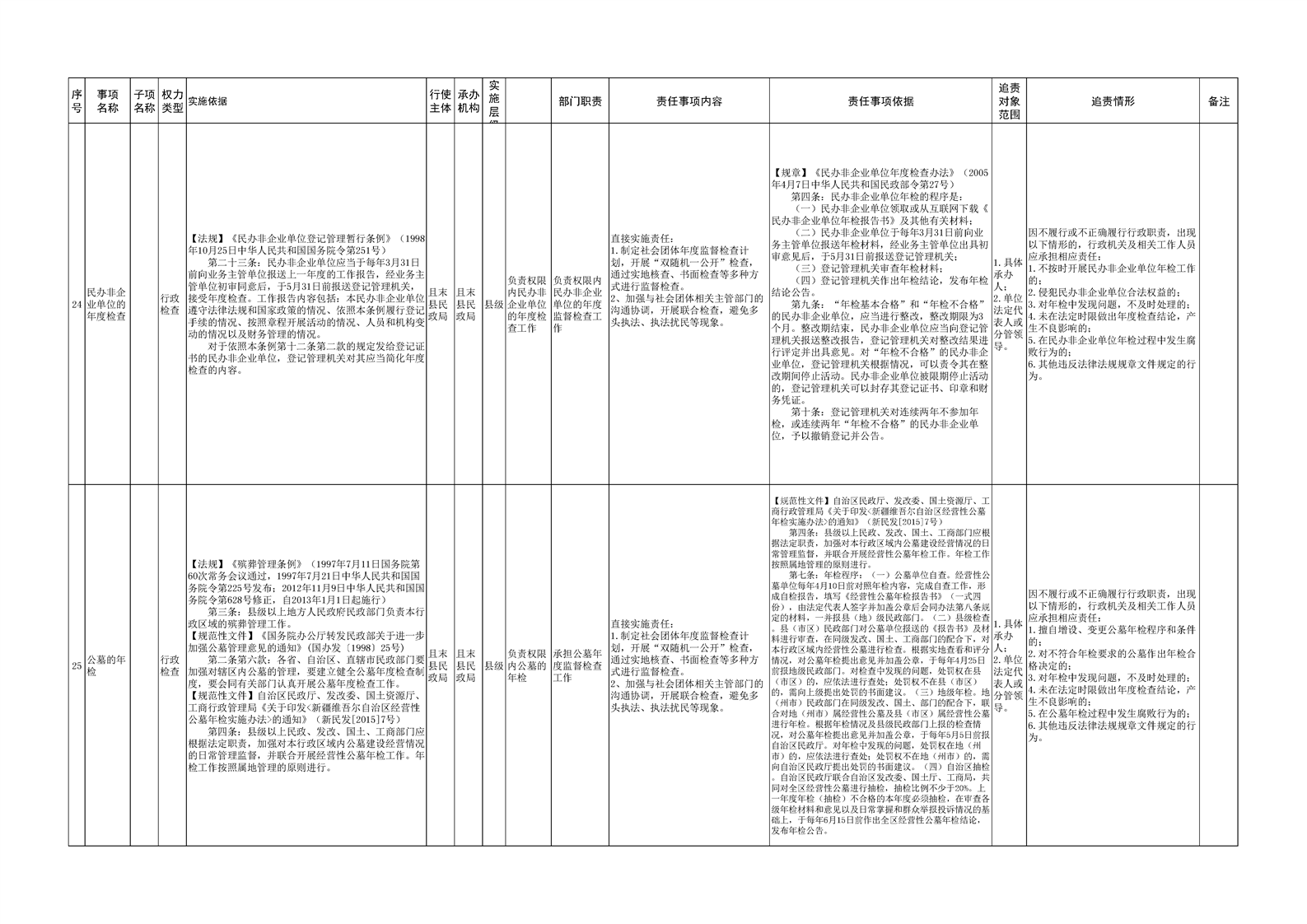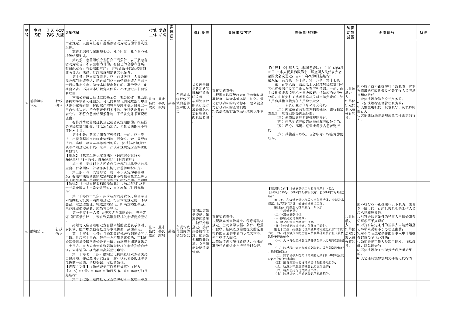 且末县民政局权责清单