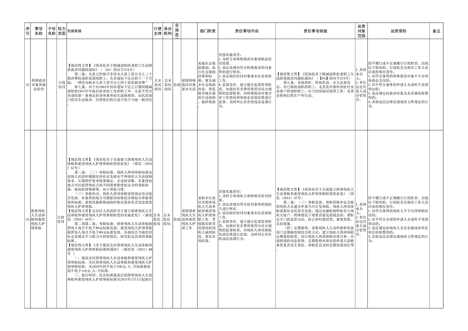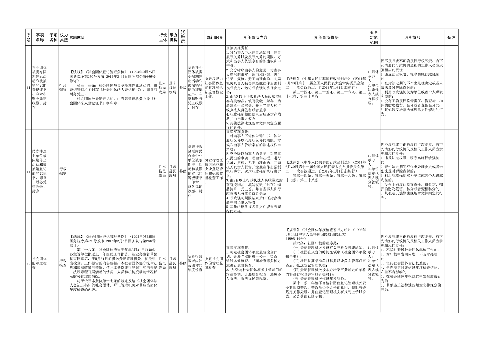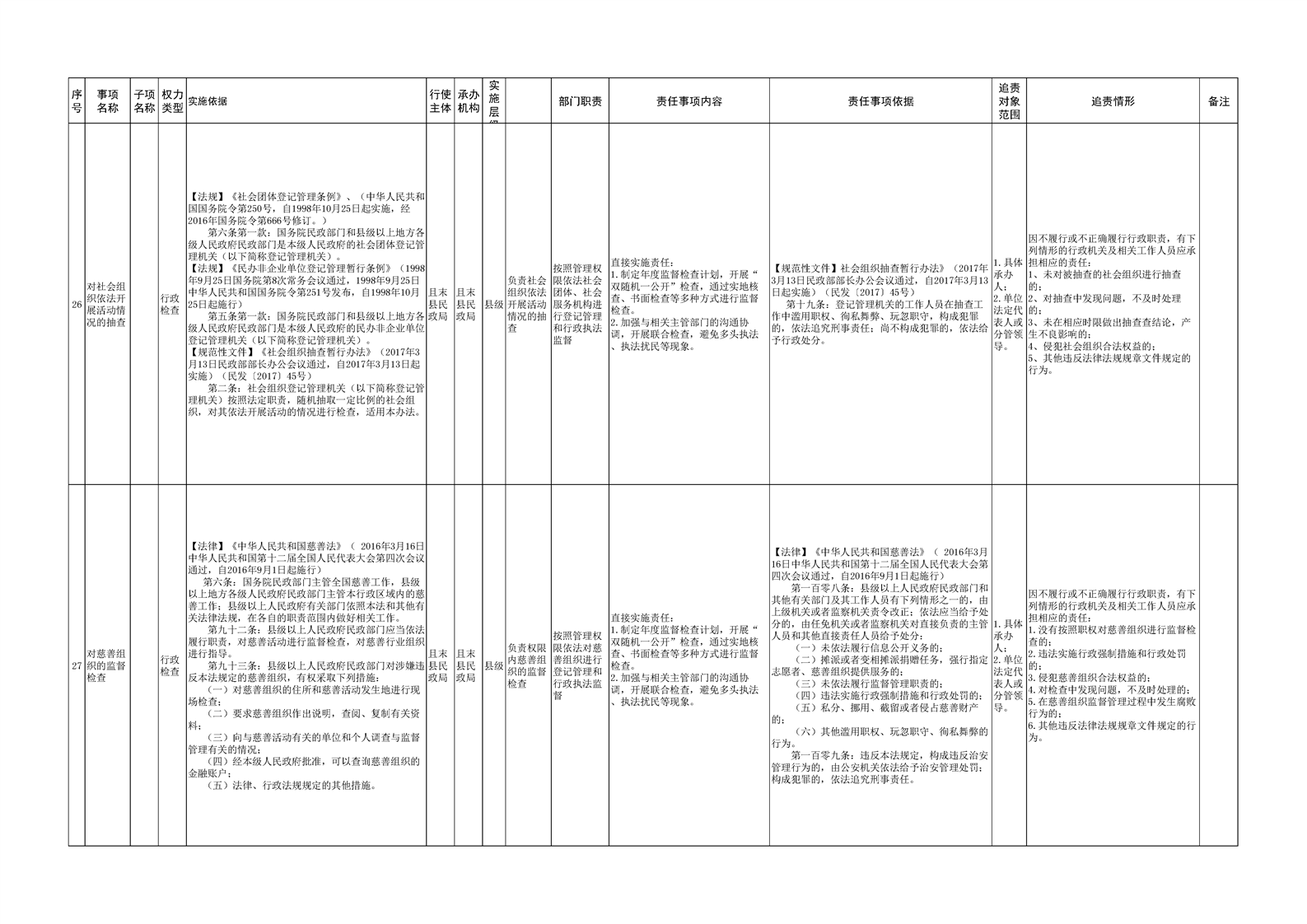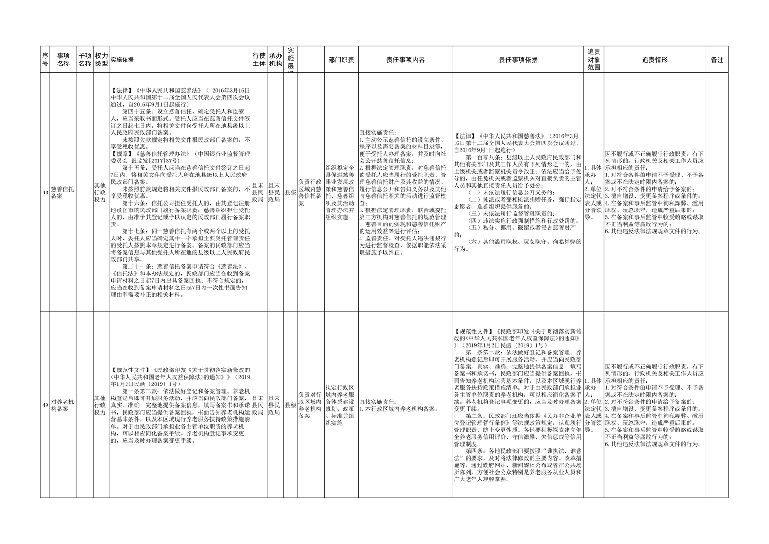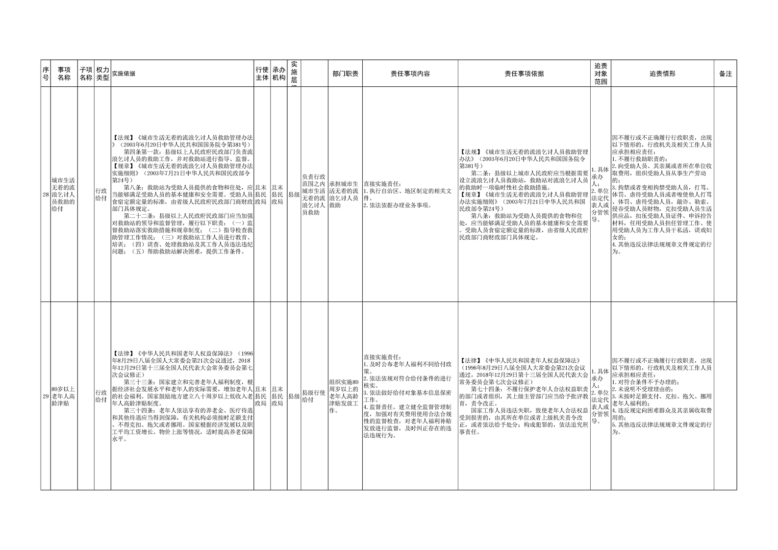 且末县民政局权责清单