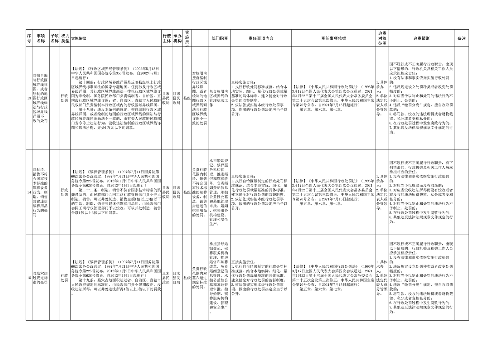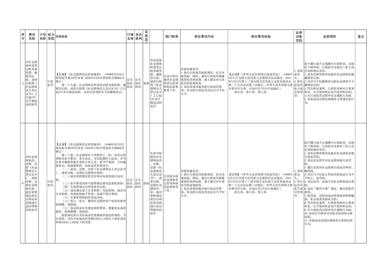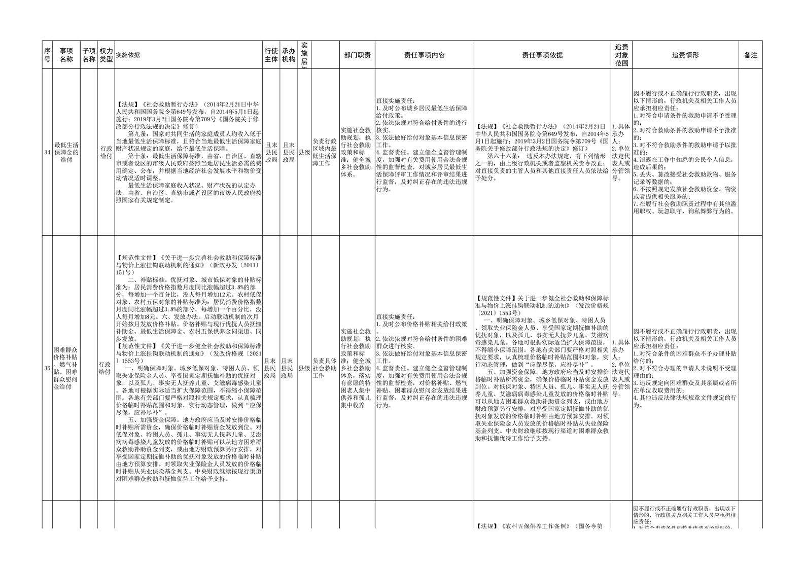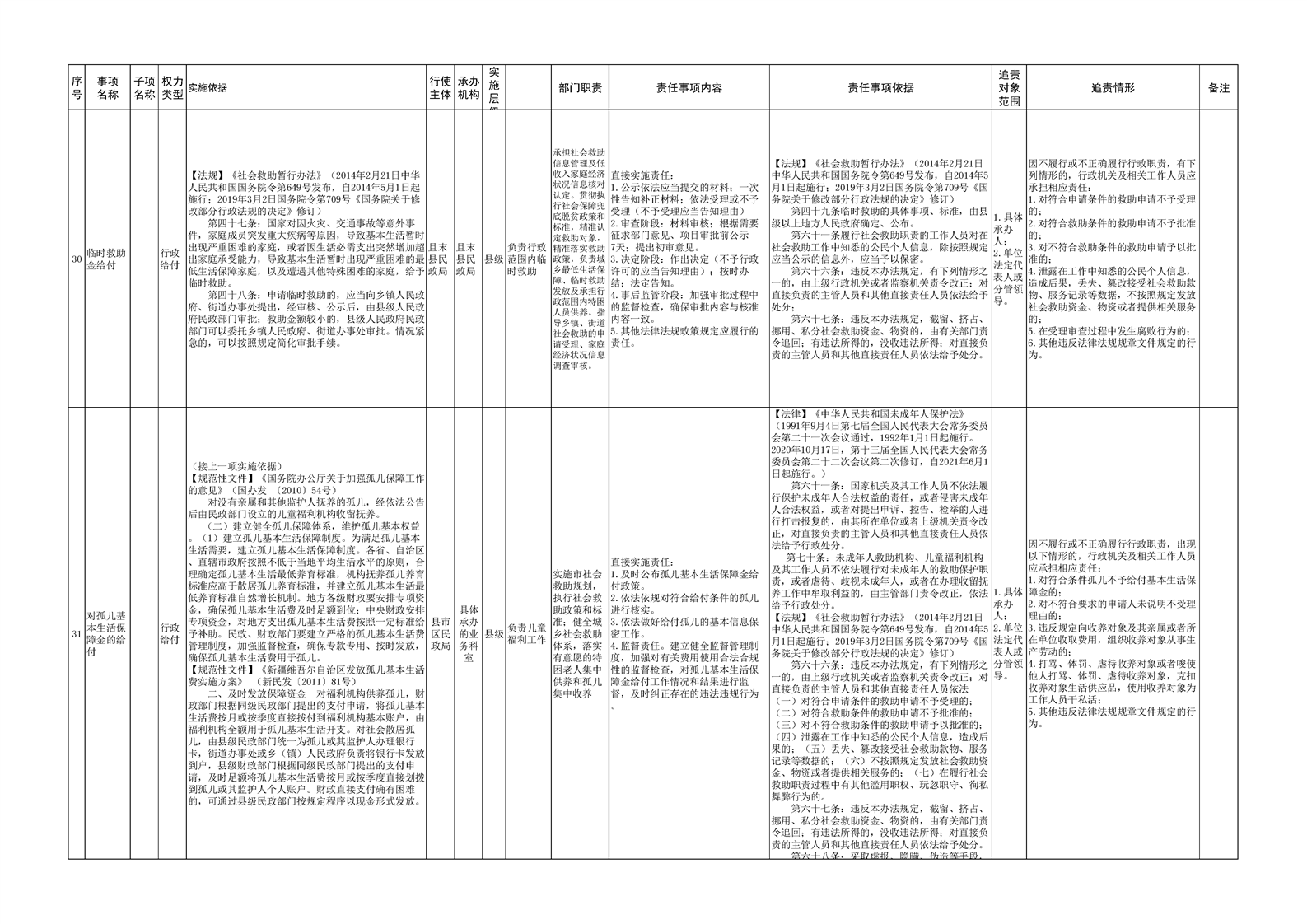 且末县民政局权责清单