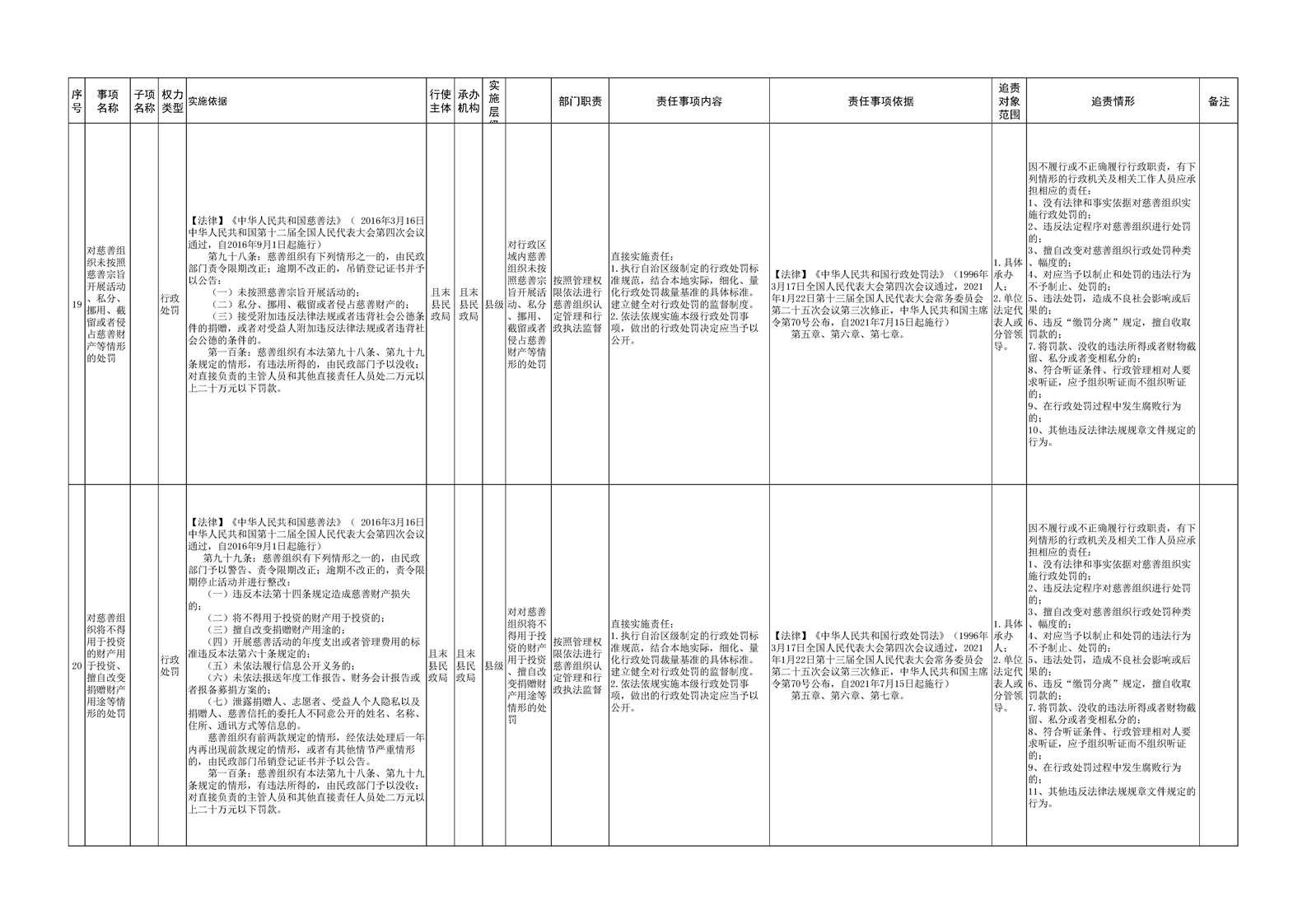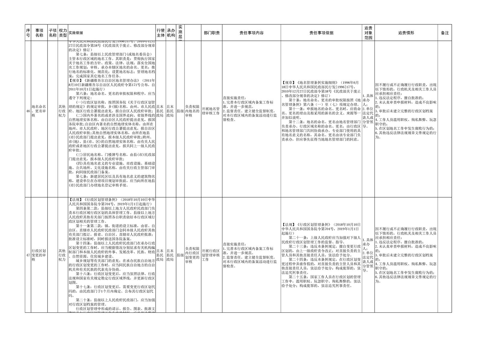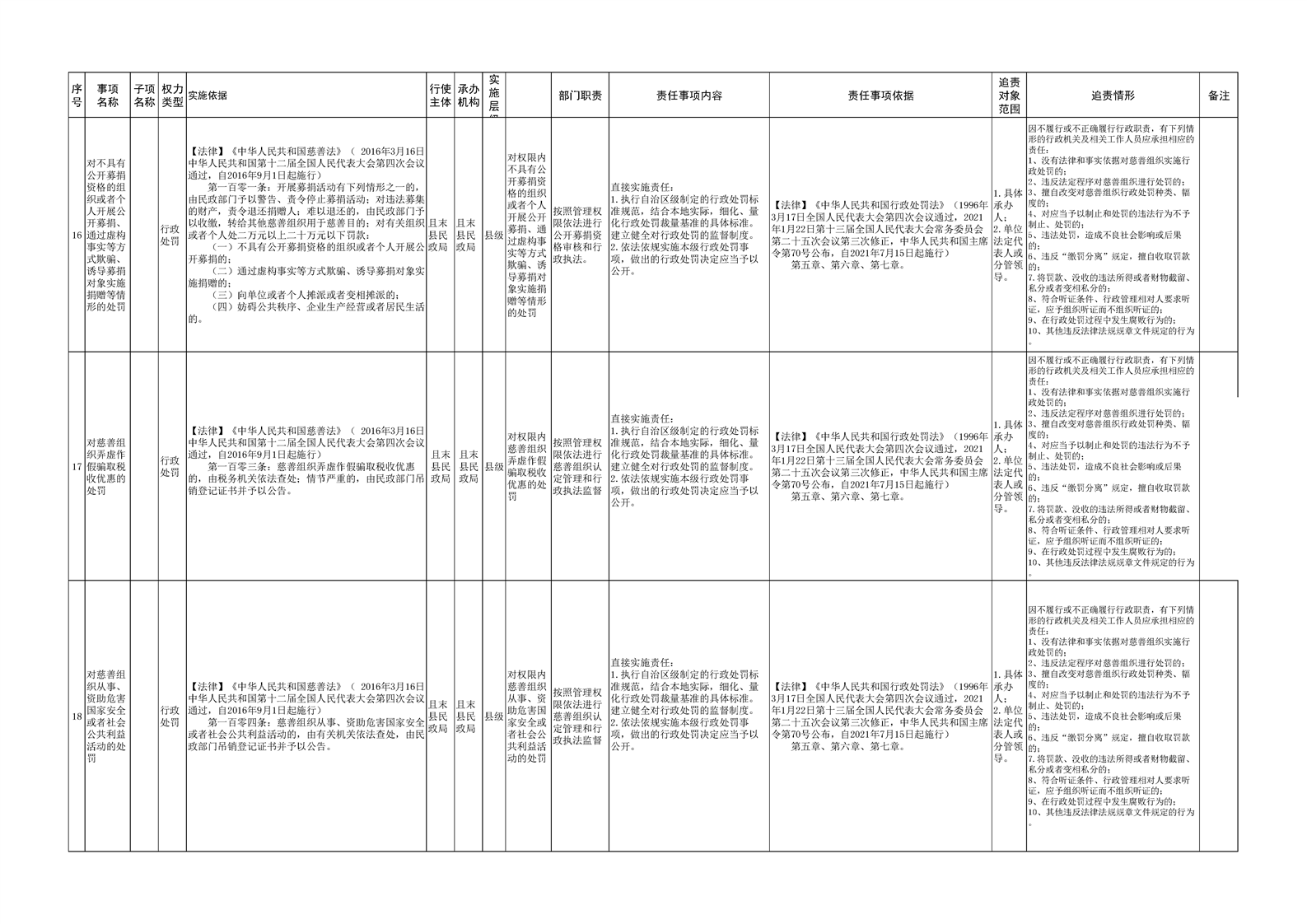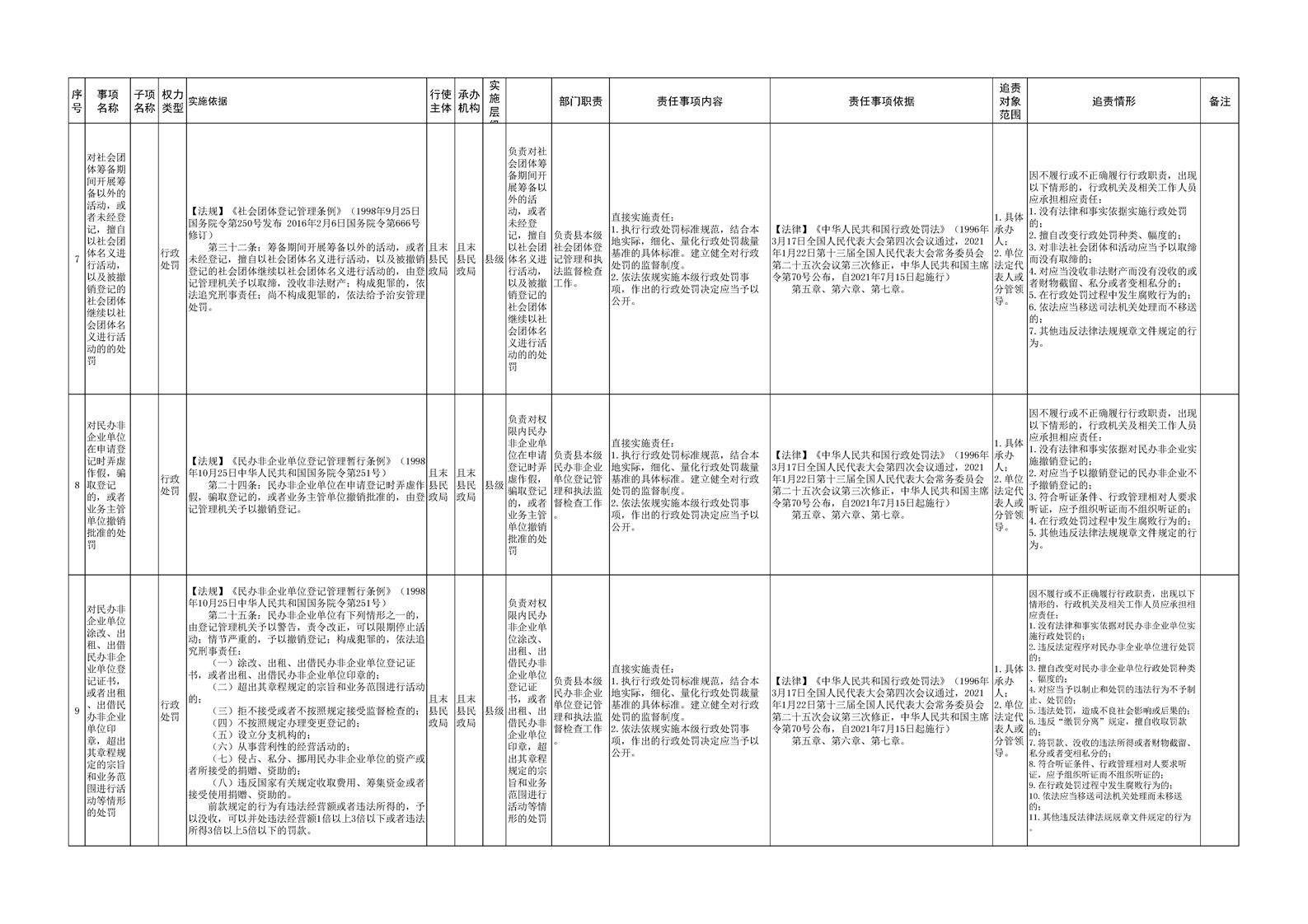 且末县民政局权责清单