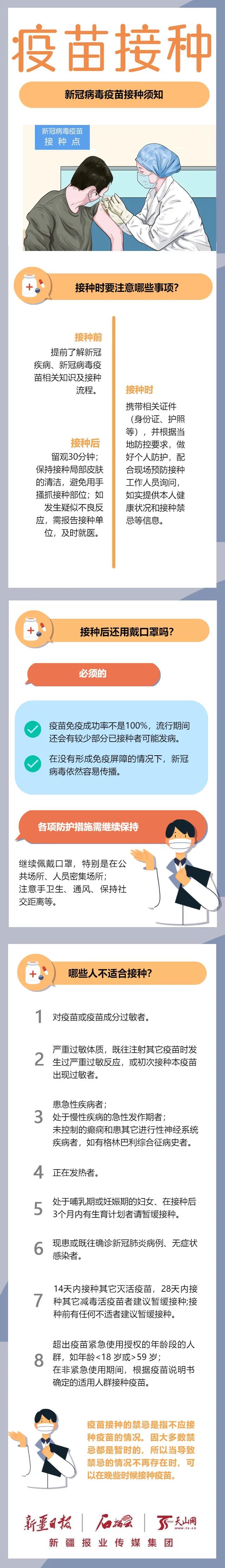 现阶段,新冠病毒疫苗已在重点人群开始接种。接种新冠病毒疫苗时要注意什么?哪些人群不适合接种?自治区疾病预防控制中心免疫规划所主任丁雄杰做了提示。