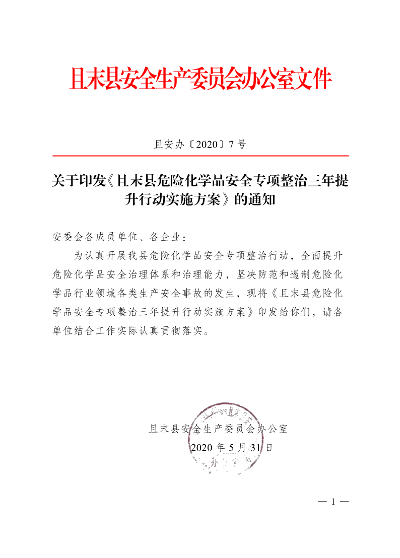 且末县危险化学品安全专项整治三年提升行动实施方案
