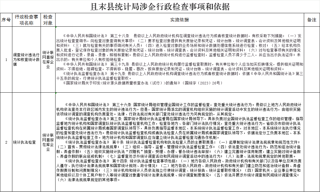 且末县统计局涉企行政检查事项和依据