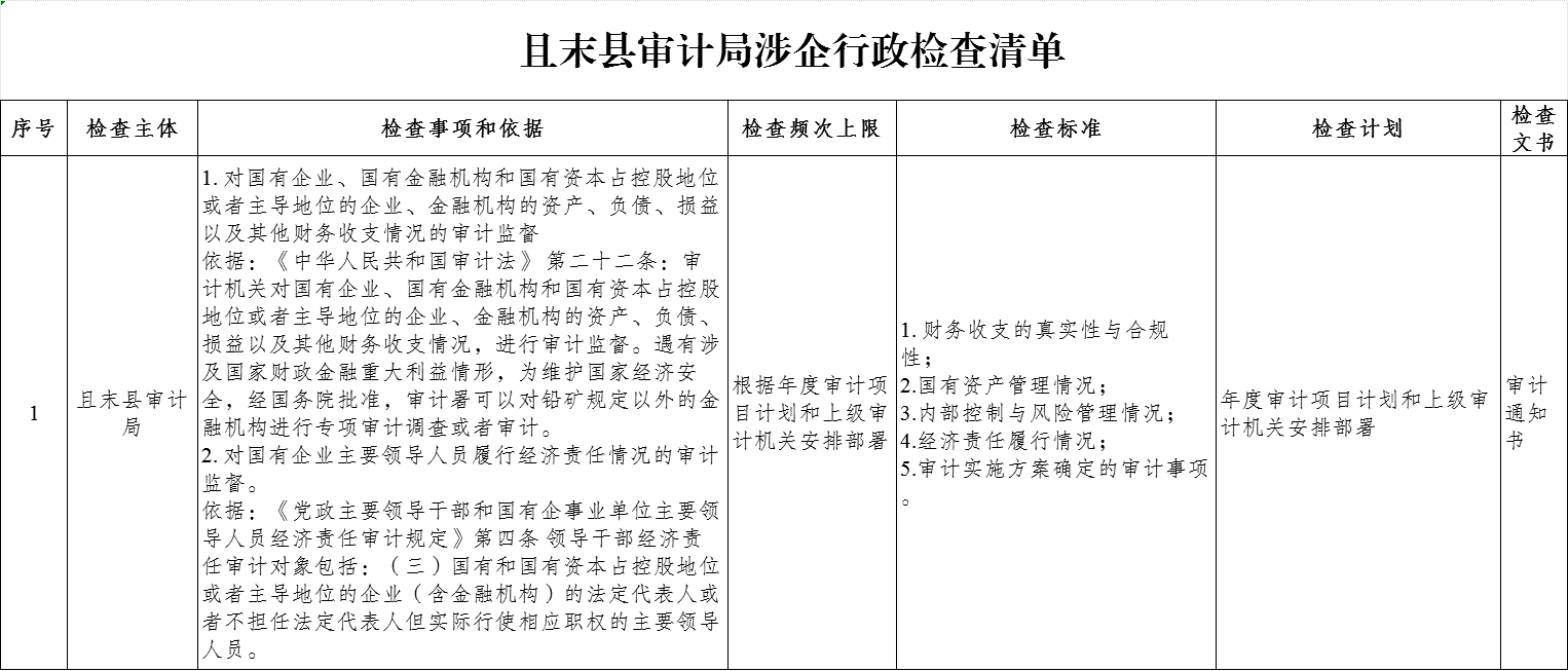 且末县审计局涉企行政检查清单