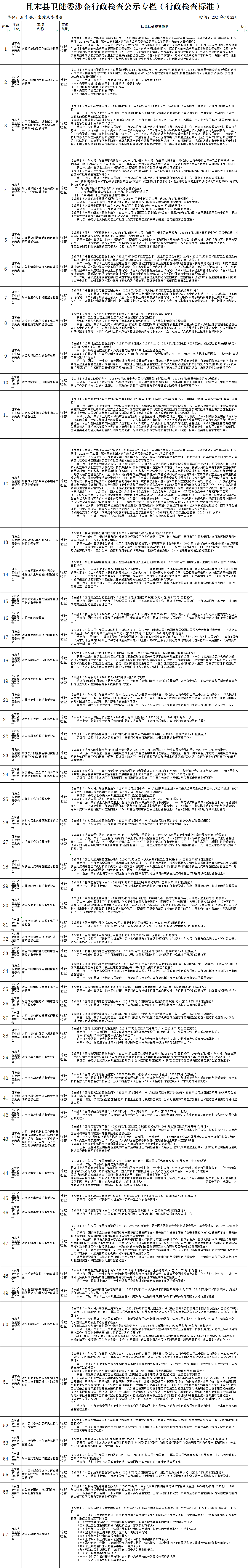 且末县卫健委涉企行政检查标准