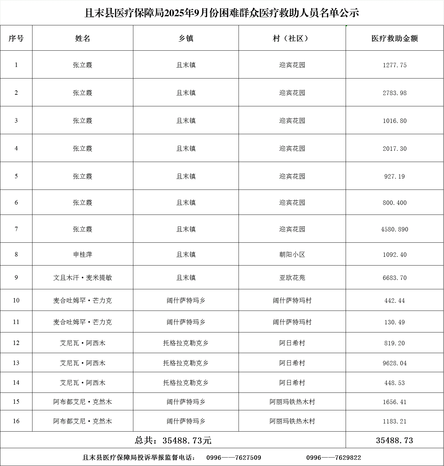 且末县医疗保障局2025年9月份困难群众医疗救助人员名单公示